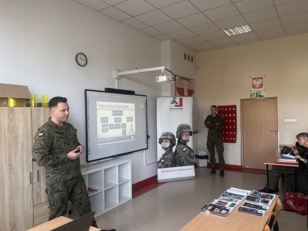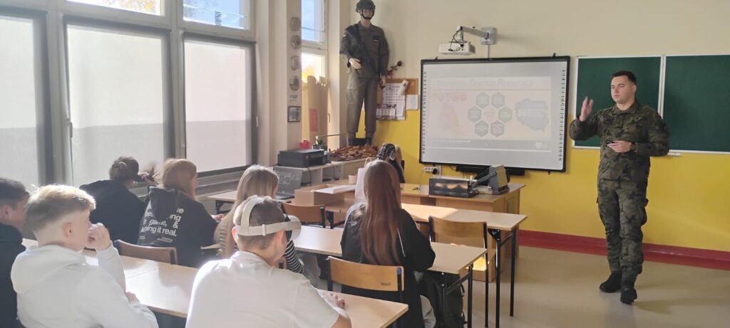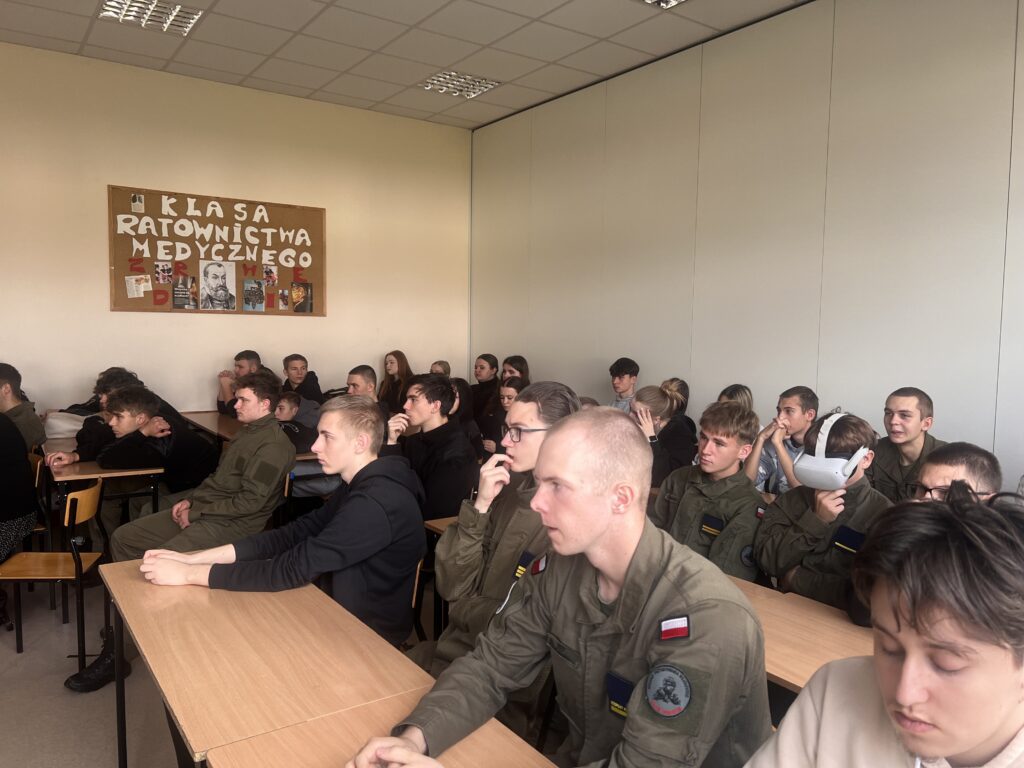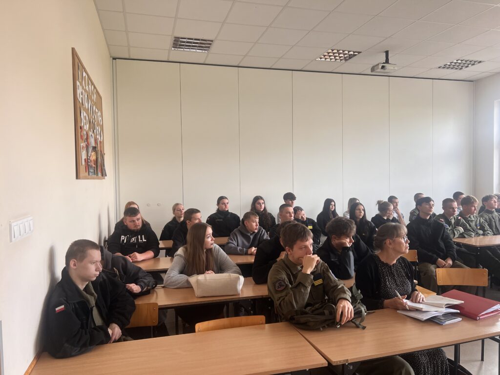 W środę, 29 października odbyła się prelekcja dla uczniów Oddziału Przygotowania Wojskowego poświęcona tematyce Sił Zbrojnych Rzeczypospolitej Polskiej. Spotkanie zostało przygotowane przez przedstawicieli WCR Płock. Podczas zajęć uczniowie mieli okazję zapozna się z ogólną strukturą i rolą Sił Zbrojnych RP oraz zadaniami Wojskowych Centrów Rekrutacji. Prelegenci przedstawili aktualne rodzaje służby wojskowej, omówili wymogi i procedury rekrutacyjne dla kandydatów a także szczegółowo wyjaśnili zasady Dobrowolnej Zasadniczej Służby Wojskowej, zwracając uwagę na możliwość odbycia skróconego szkolenia przez absolwentów programu OPW. Uczniowie dowiedzieli się również, czym jest Terytorialna Służba Wojskowa i jak stanowi ona doskonałą okazję do zdobycia pierwszego doświadczenia wojskowego już w czasie nauki. Podczas spotkania zaprezentowano również ofertę edukacyjną polskich akademii wojskowych, które przygotowują przyszłych oficerów Wojska Polskiego. W ramach zajęć uczniowie obejrzeli krótkie filmy prezentujące specyfikę różnych rodzajów Sił Zbrojnych RP. Dużym zainteresowaniem cieszyła się także interaktywna prezentacja działań wojskowych z wykorzystaniem gogli VR, dzięki której uczestnicy mogli w realistyczny sposób przenieść się w wirtualny świat wojska. Spotkanie dostarczyło wielu cennych informacji osobom, które w przyszłości rozważają karierę wojskową lub chcą lepiej poznać funkcjonowanie Sił Zbrojnych RP.