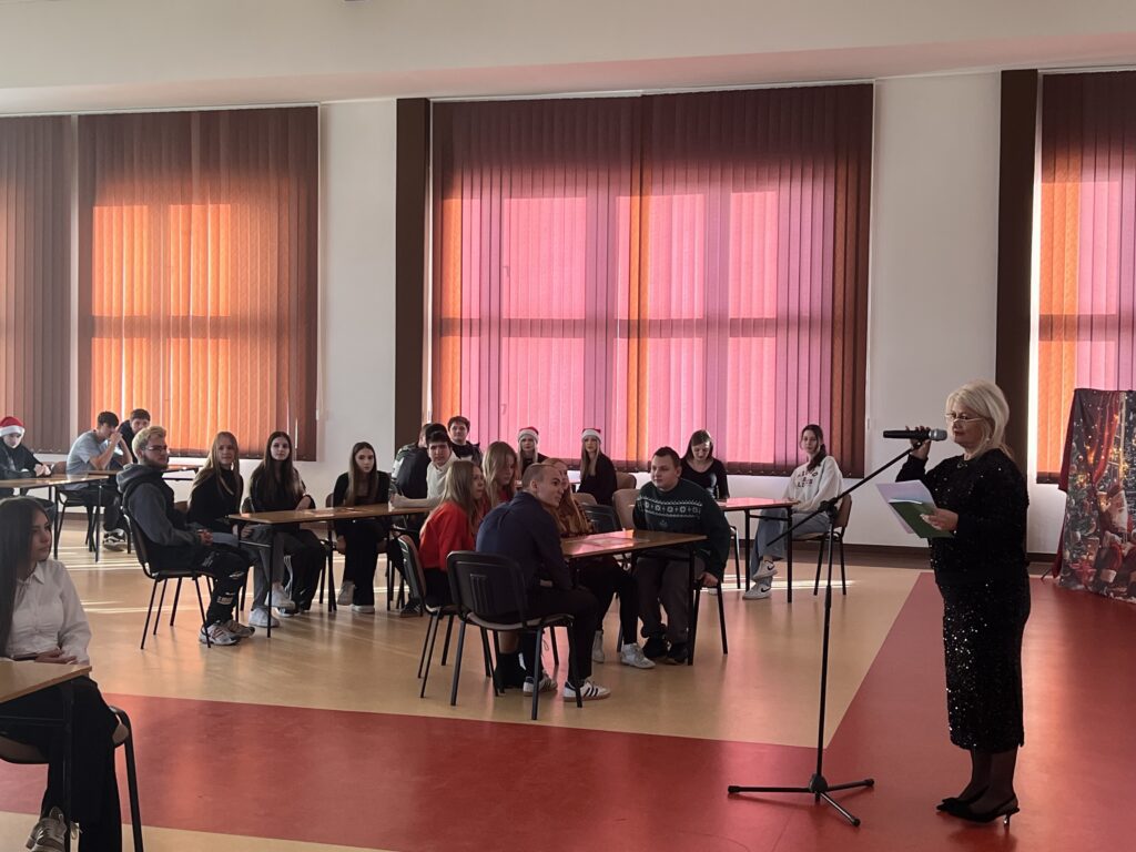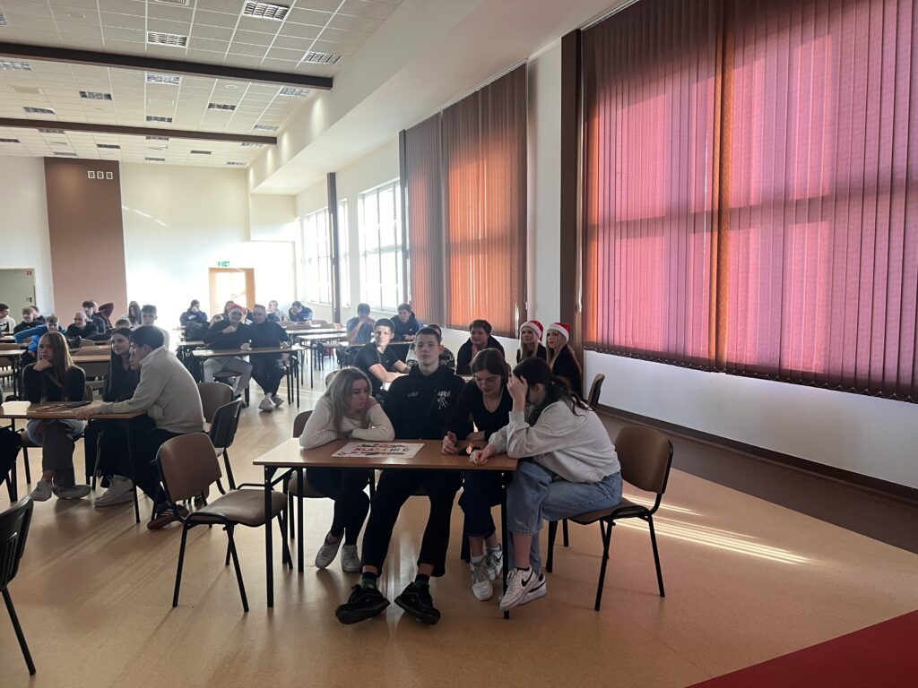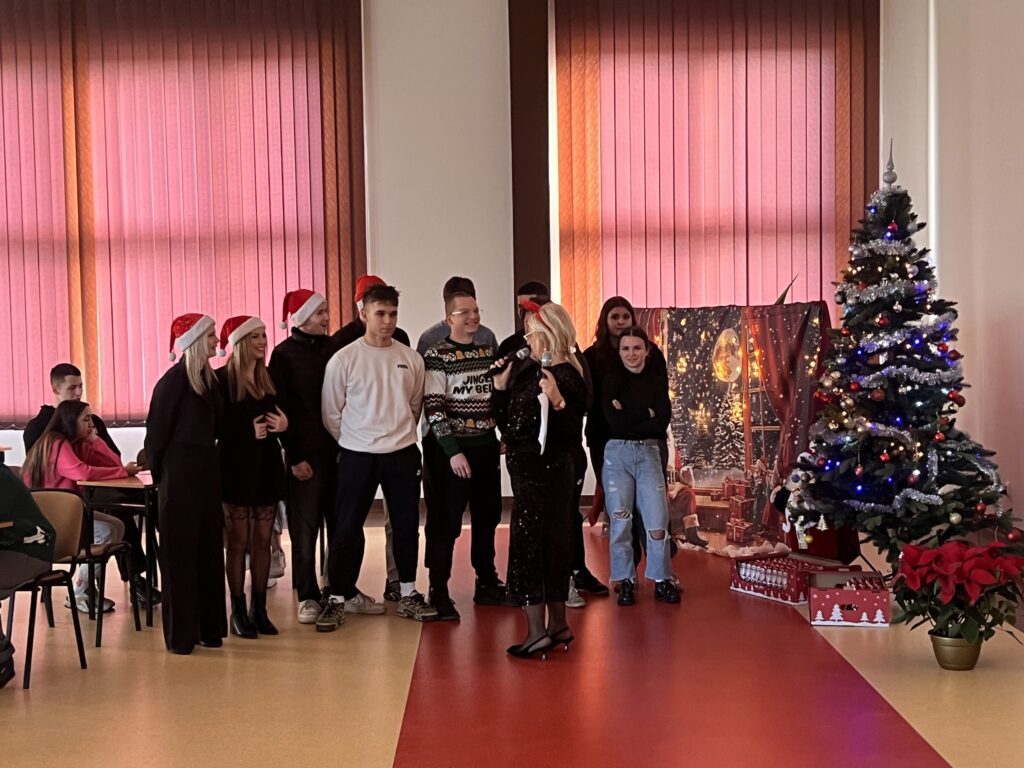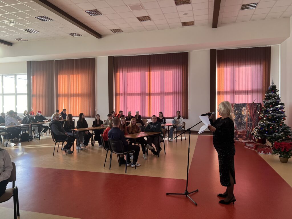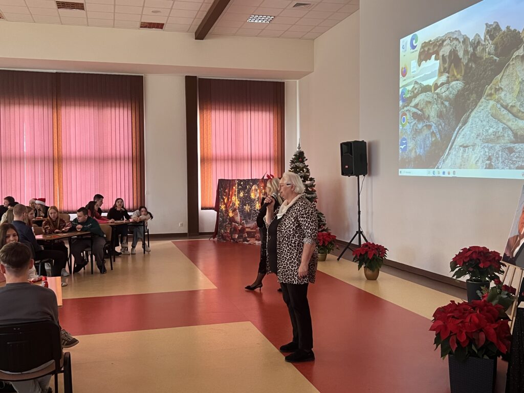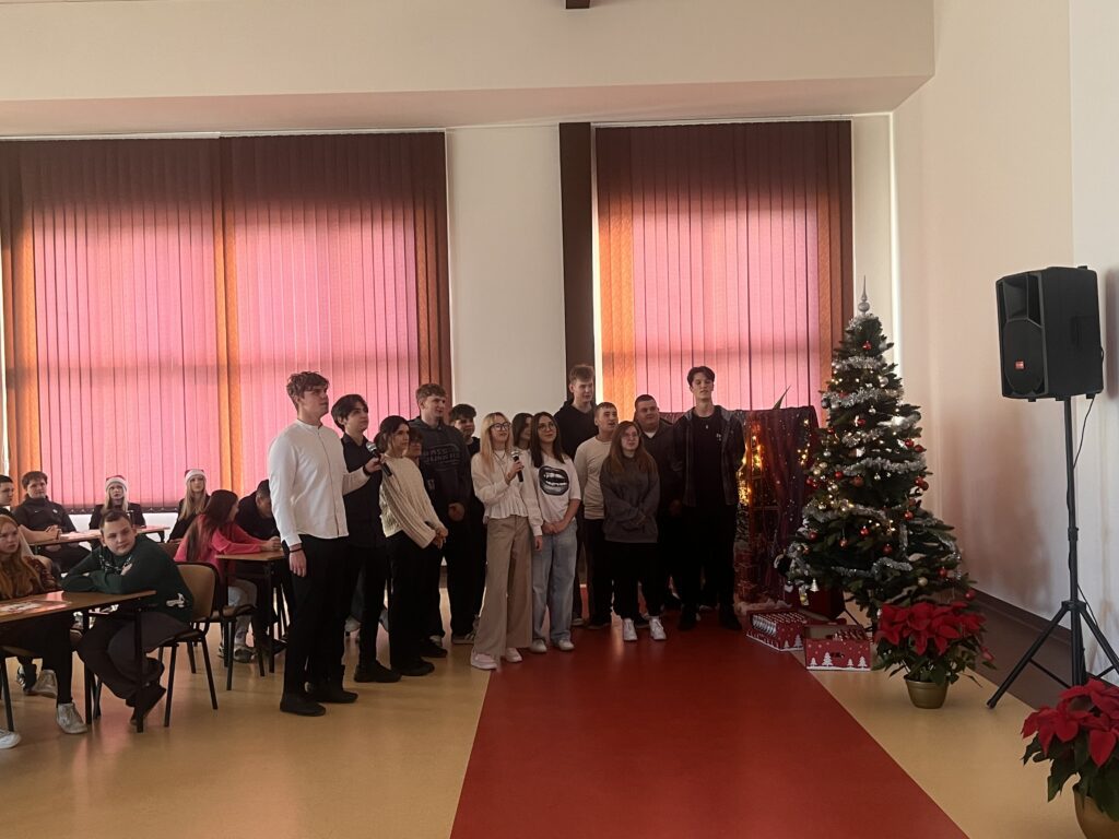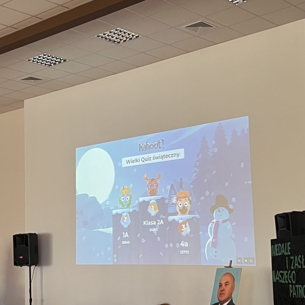 Zwycięskie klasy otrzymały z rąk pani Dyrektor vouchery, natomiast dla wszystkich uczniów przygotowany był słodki upominek. Zwieńczeniem uroczystości było świąteczne karaoke, uczniowie klasowo prezentowali kolędy i pastorałki, wprowadzając wszystkich w radosny, bożonarodzeniowy nastrój.