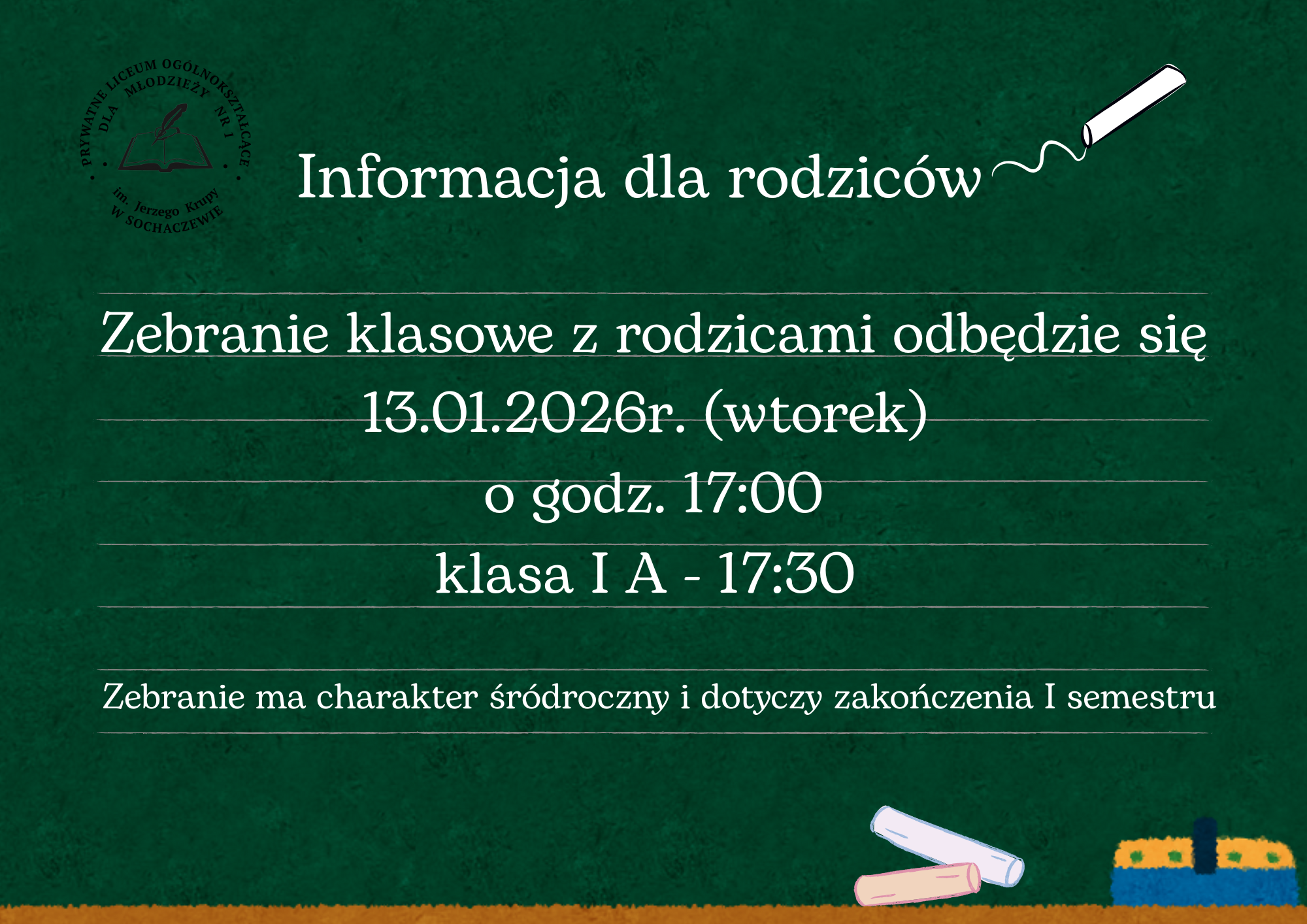 Autor: Eliza WilczekOpublikowano 9 stycznia 2026Opublikowano w Bez kategoriiBrak komentarzy do Zebranie śródroczne z rodzicami Zebranie śródroczne z rodzicami Nawigacja wpisu Życzenia świąteczne Dodaj komentarz Anuluj pisanie odpowiedziTwój adres e-mail nie zostanie opublikowany. Wymagane pola są oznaczone *Komentarz * Nazwa * Adres e-mail * Witryna internetowa Zapamiętaj moje dane w tej przeglądarce podczas pisania kolejnych komentarzy.